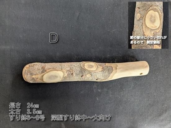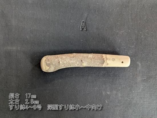 画像とともにおよその長さ太さを掲載しております。長さが同じでも太くて重いものは価格が高くなりますのでご了承ください。また適するすり鉢の大きさもご参考の上お選びください。